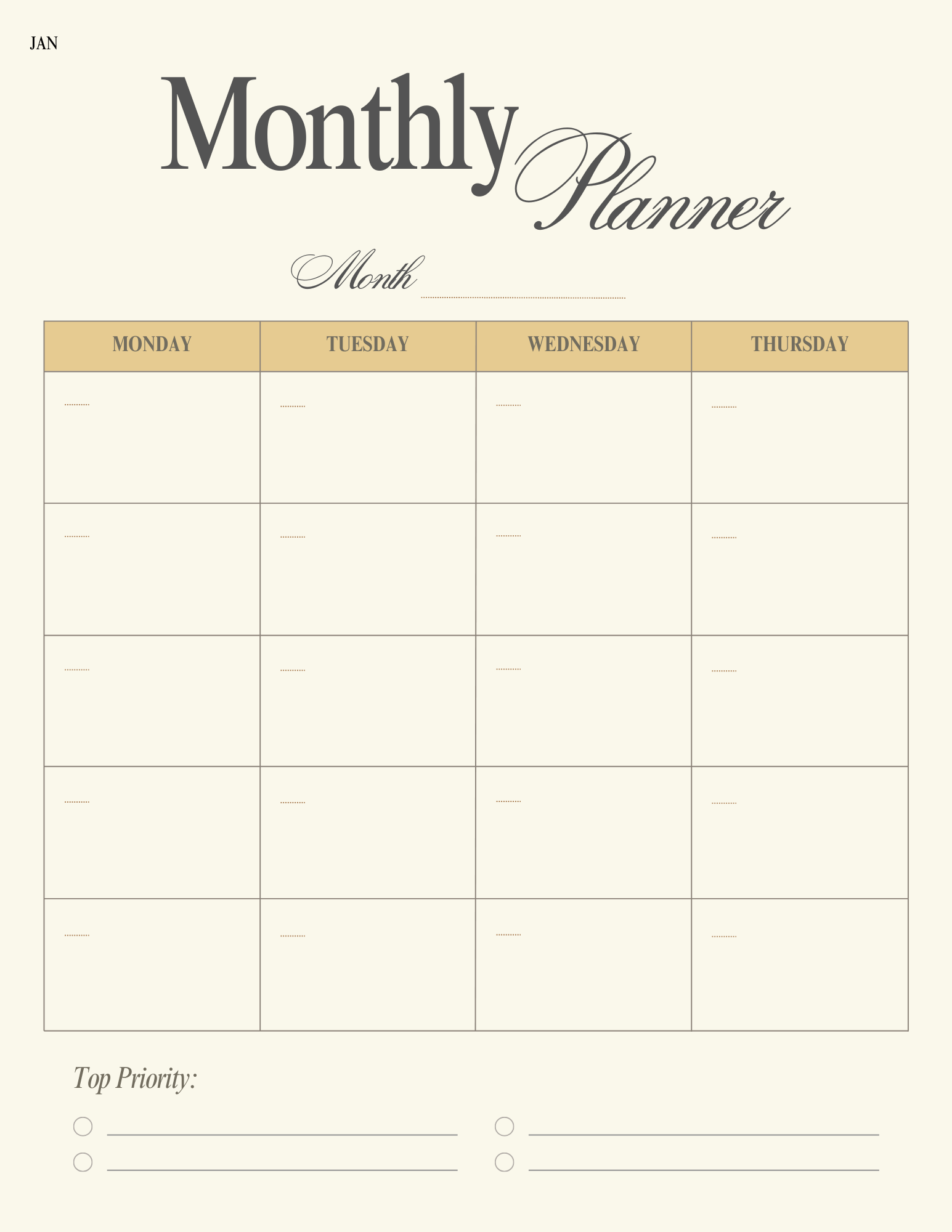 The Mind, Body, Soul Journal is not just a planner—it’s a transformative tool for intentional living. Thoughtfully designed to guide you through self-reflection, goal setting, and mindfulness, this journal is your companion for creating a balanced and fulfilling life. From beautifully crafted prompts to inspiring trackers, each page is a step toward nurturing your mental clarity, physical well-being, and spiritual growth. Start your journey today and discover the power of aligning your mind, body, and soul in 2025.